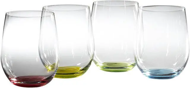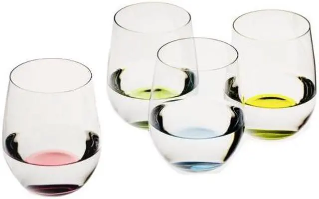 Sip your favorite wine in style with this four piece Riedel wine glass set. The Riedel Happy "O" glasses are the newest revolution in glassware. Casual yet elegant, these wine glasses are appropriate for fine wine enjoyment, as well as casual sipping. The happy design add color imbedded in its base of each glass with one glass in dawn red, spring green, baby blue, and easter yellow. The designs of "O" are based on the benchmark shapes of Riedel Vinum. The Riedel O wine tumblers and are recomended for Viognier and Chardonnay wines.