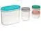 Perfect for storing dry foods, craft items and more, this 4-piece Multi-Purpose Nesting Canister Set features durable plastic containers with colored lids. Set includes (2) 3-ounce, (1) 8-ounce and (1) 32-ounce container. BPA-free. Dishwasher safe. Comes shrink wrapped.