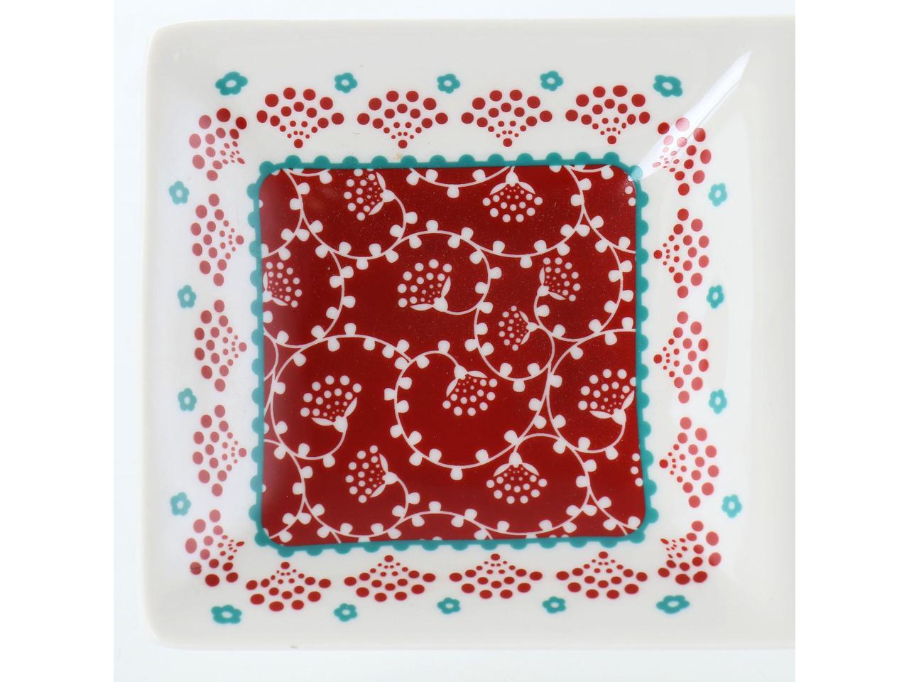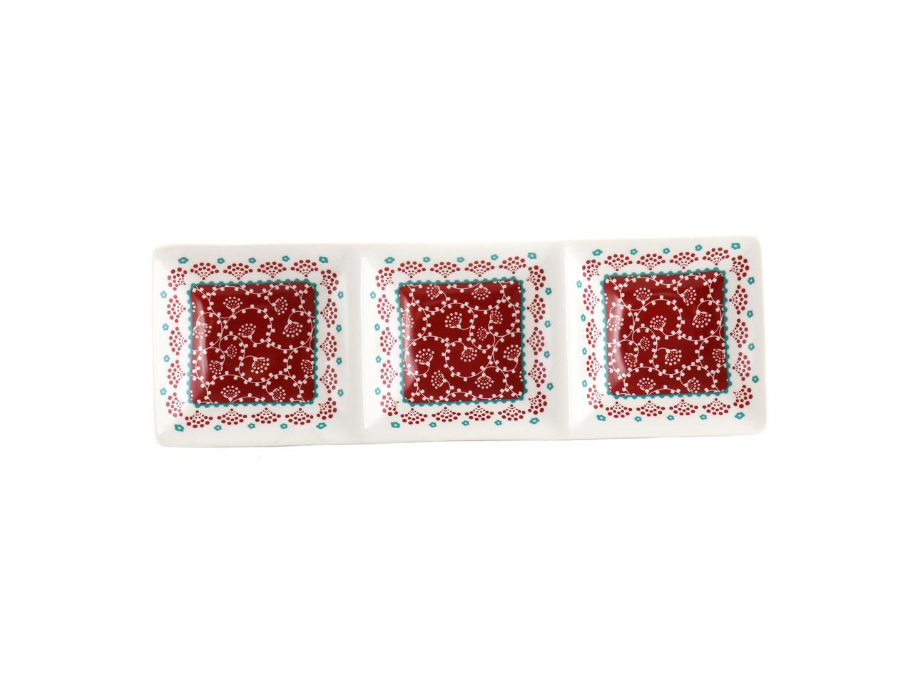 Gibson Home Village Vines 13.5 Inch Ceramic Rectangular 3 Section Tray in Red