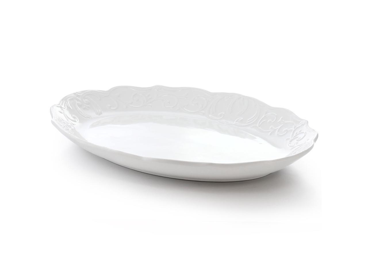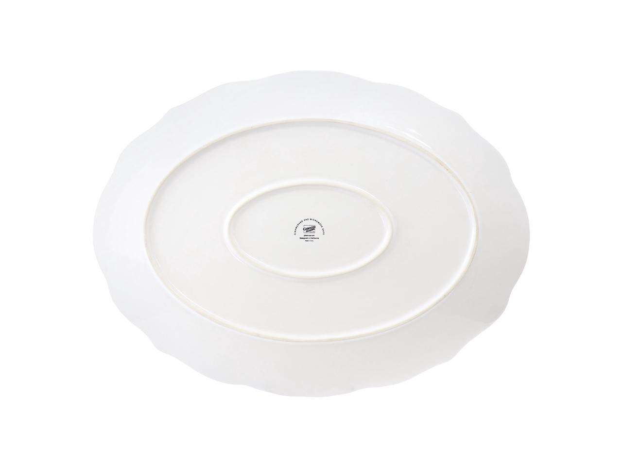 Gibson Home Bountiful Joy 18.75 x 14 Inch Durastone Oval Platter in White