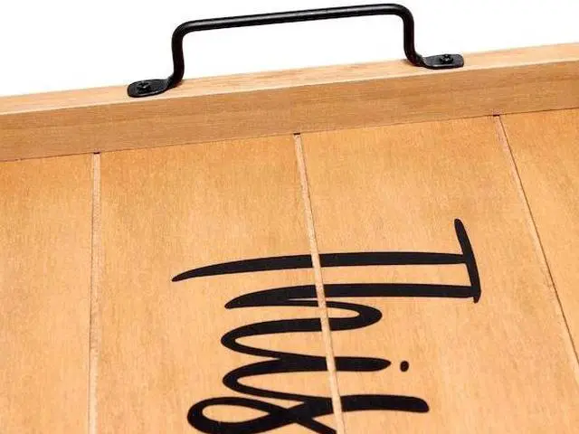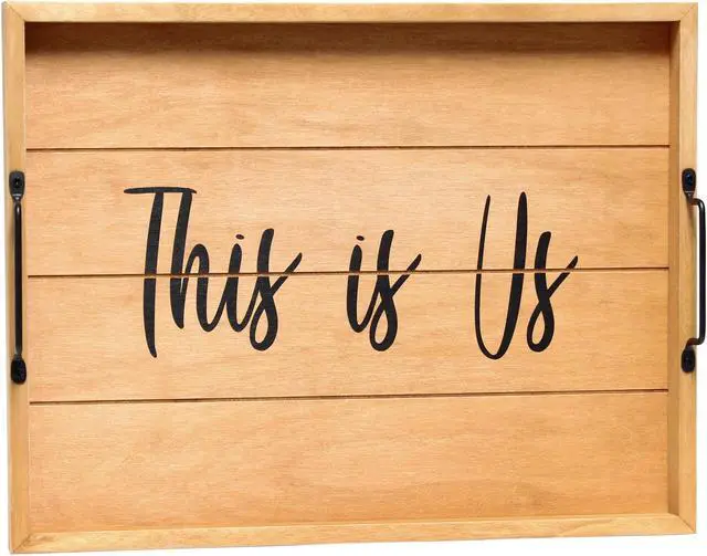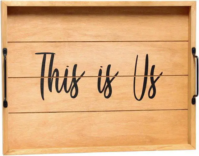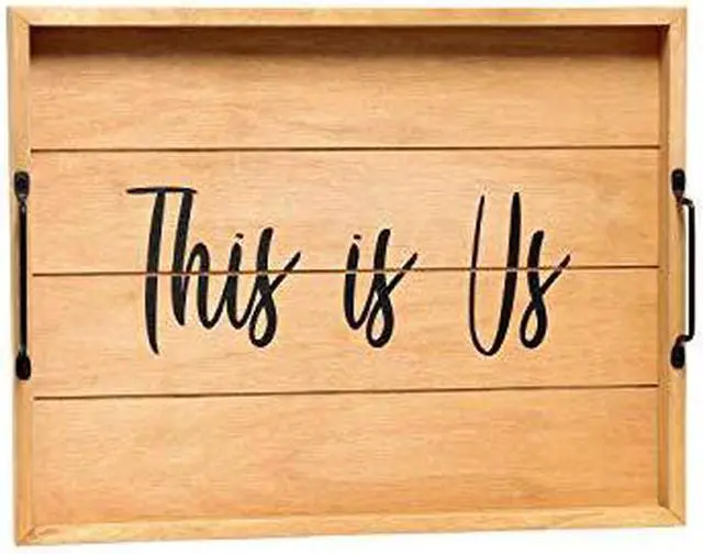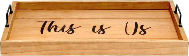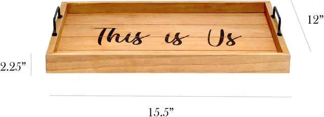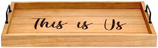 Freshen up your home with this natural wooden tray! Accented with black metal handles and black text this tray is on trend to give your home that cozy farmhouse feel. Use to serve breakfast in bed, food and drinks at a party or makes for an excellent centerpiece for your dining table, kitchen counter, coffee table or ottoman.