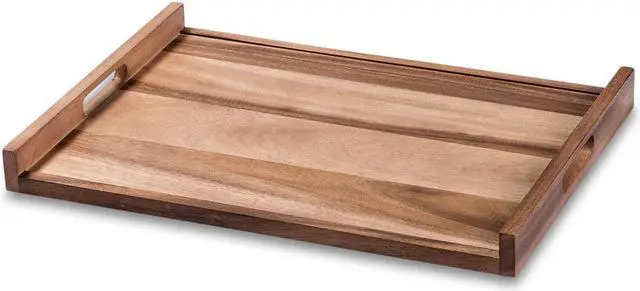 Solid wood, this generously sized tray is designed to hold anything from plates, glasses and pitchers to magazines and vases.