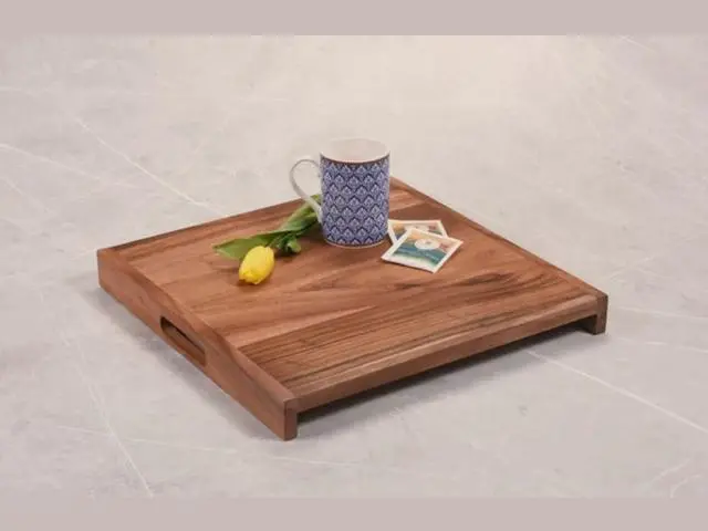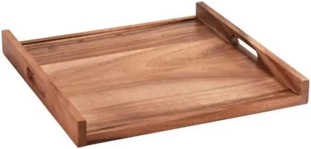 Solid wood, this generously sized tray is designed to hold anything from plates, glasses and pitchers to magazines and vases.