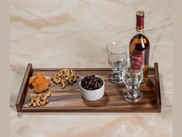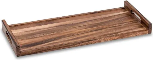 Solid wood, this generously sized tray is designed to hold anything from plates, glasses and pitchers to magazines and vases.