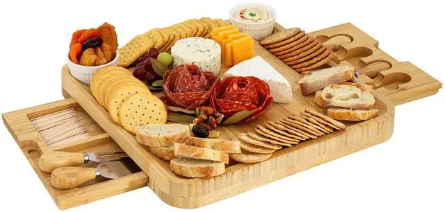 Perfect for cheese lovers and entertaining enthusiasts, the MegaChef Bamboo Cheese Board provides an organized and elegant way to display a variety of meats, cheeses, fruits, and other snacks. The natural bamboo construction is not only lightweight and durable but also adds a warm, rustic touch to any gathering. With its functional design, this set makes it easy to present a beautiful and inviting charcuterie spread. Whether you're hosting a dinner party, a wine tasting, or a casual gathering, this bamboo charcuterie board set is a must-have for effortless and stylish entertaining.