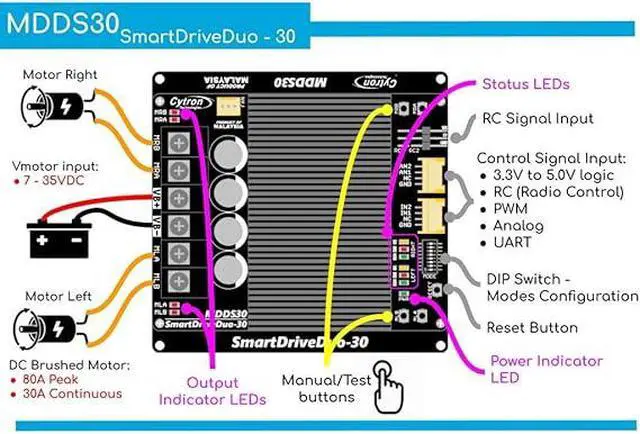 • PN00218-CYT14 Cytron Motor Driver 30Amp 7V-35V DC 2 Channels SmartDriveDou MDDS30