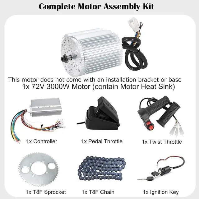 Brushless DC Motor 3000W 72V Electric Motor High Power Brushless Controller 50A Scooter Motor Go Kart Electric Motor Kit (No Brackets and Bases Installed)