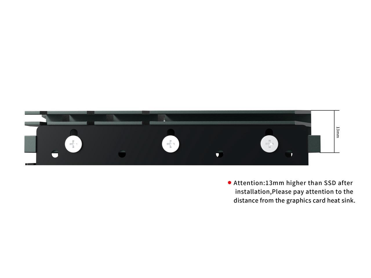 - Attention:13mm higher than SSD after installation,Please pay attention to the distance from the graphics card heat sink.