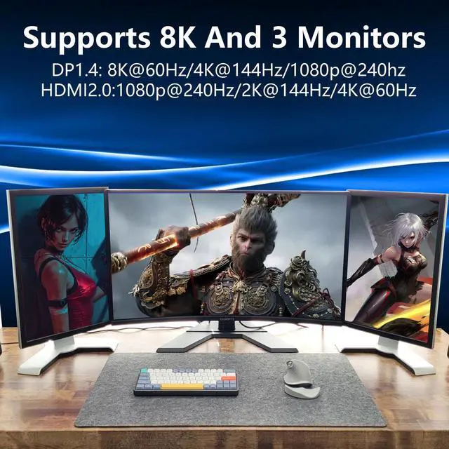 High Definition Display Effect: The video card is equipped with DP*1, HDMI*1, DVI*1 three output ports, which can support high-definition display of three monitors at the same time, greatly improving the game performance.
