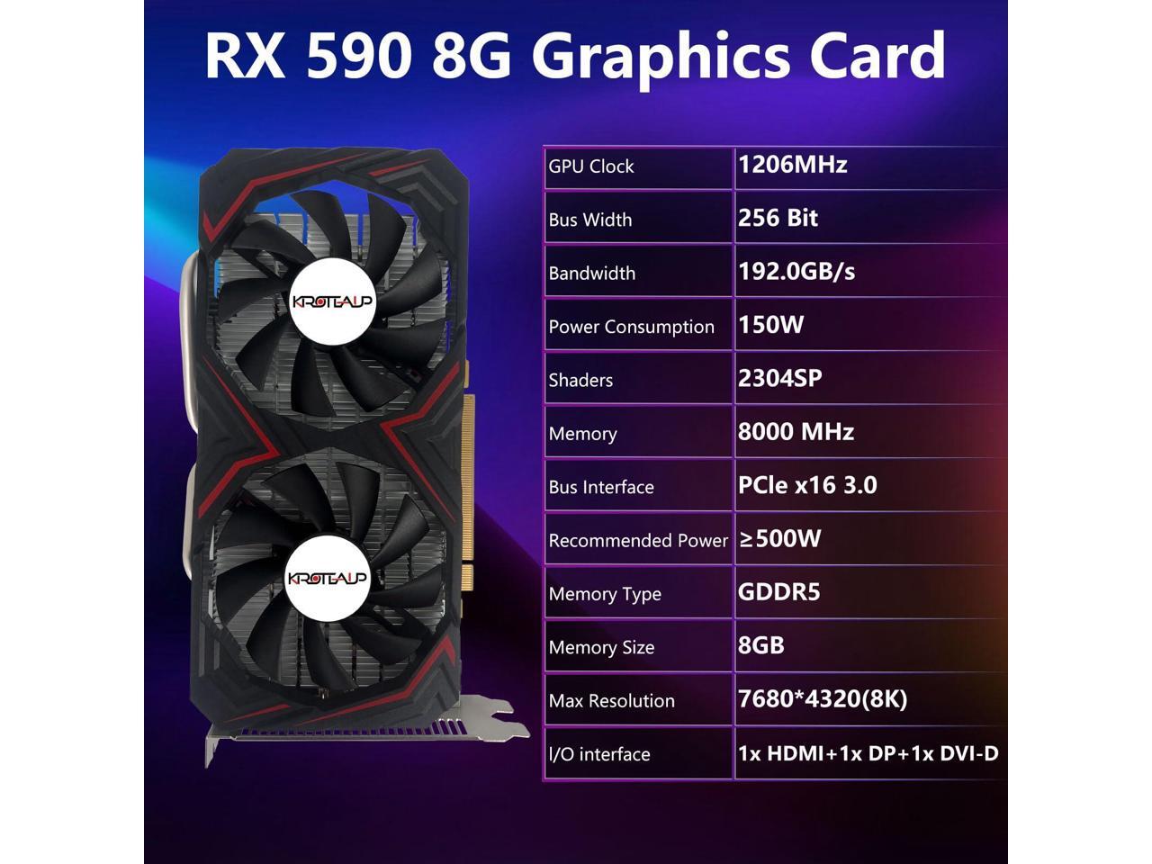 Kroteaup Radeon RX 590 8GB Graphics Card, 2304sp GDDR5 256Bit Pci Express 3.0, with HDMI/ DP/ DVI Ports and Double fan, Video Card for Office and Computer Gaming