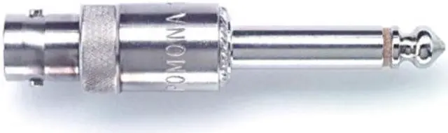 The 1297 is a BNC Female to Standard 1/4" Two Conductor Phone Plug. This allows for BNC male to be used with equipment having standard 6.35mm (0.25") diameter phone jacks. Readily adapts equipment to available BNC coaxial cables. All metal construction to insure proper shielding.