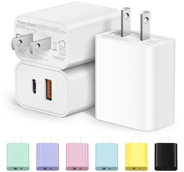 ![Alt view image 6 of 7 - [3 Pack] USB C Charger Block Fast Charging Multiport Adpater iPhone 17 Charger Block 20W USB-C & USB-A Port for iPhone 17/16/15/14/13/12/11/X/8 iPad, Google Pxel, Samsung Galaxy](https://c1.neweggimages.com/productimage/nb640/C3S5D2512250XX536C5.jpg)