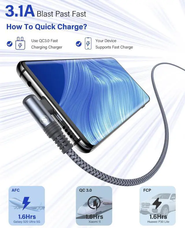 ![Alt view image 3 of 7 - iPhone 17 Charger USB to Type C Cable 90 Degree [2-Pack,6.6FT] Fast Charging Cord for iPhone 17 16 15 Pro Max Plus Samsung Galaxy S26 S25 S24 S23 S22 S21 S20 A54 A15 Note Flip LG Pixel Moto](https://c1.neweggimages.com/productimage/nb640/C3H5D26010204XXH5D7.jpg)