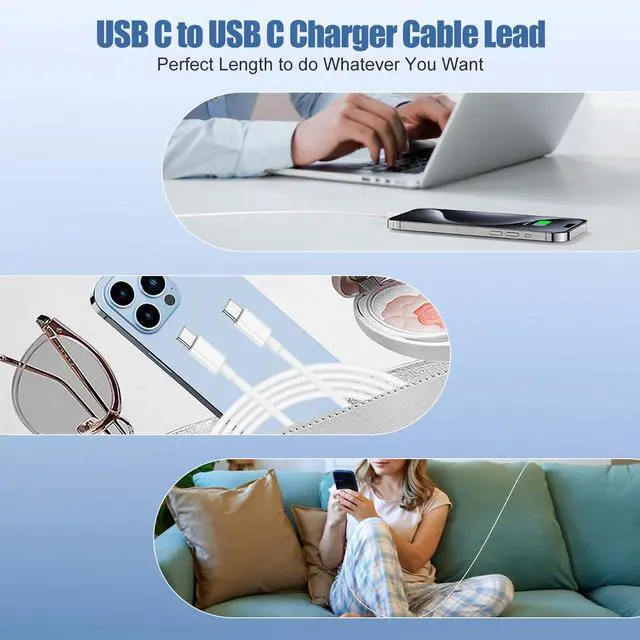USB-C to USB-C cable is convenient for usage while charging and sync at home/office/travel in bed, hotel rooms, and more.