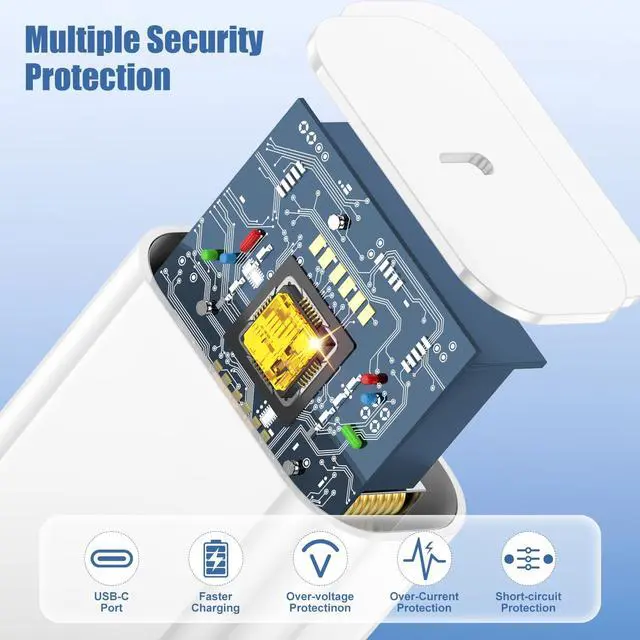 Built-in original chip, safe and durable, let you rest assured. With the promise that no warning messages pop up, ensure that your lightning device loads and charges safely and at the fastest speed possible. The latest smart iQ chip in the USB-C power adapter protects your phone and pad from overcurrent, overvoltage, short circuit and overheating.