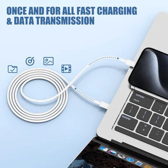 (20W PD and 60W Cable)- iPhone 15/16 Cable 10FT Long Data Sync Fast Charging USB-C to USB --C Cable
