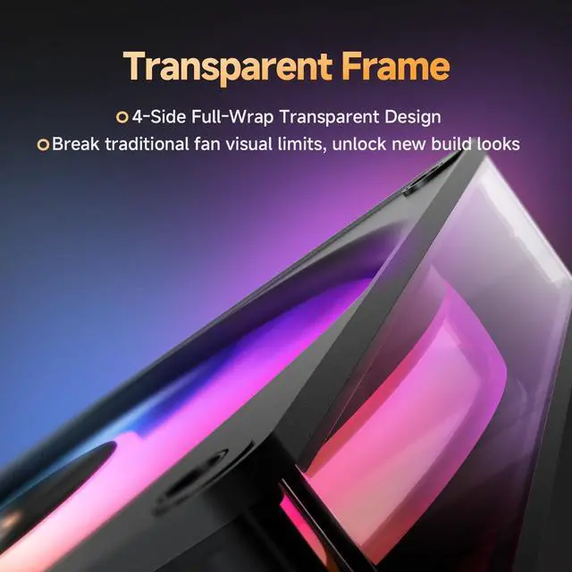 Transparent FrameThis PC fans clear frame blends seamlessly with internal lighting to make unique transparent ambient light.