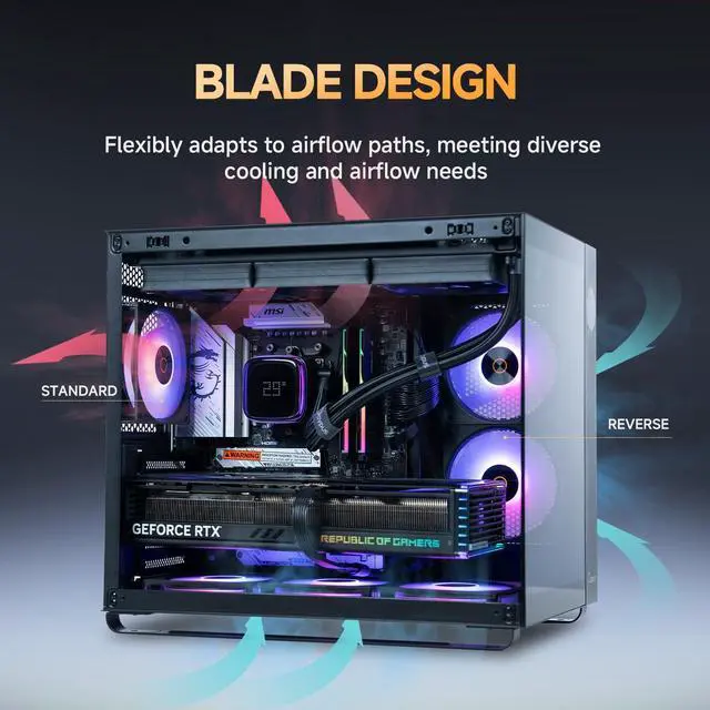 Forward and Reverse Blade DesignFeaturing 9 precisely engineered blades, this design ensures the fan's front-facing aesthetic remains striking regardless of wind direction.