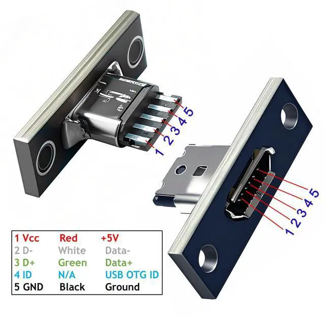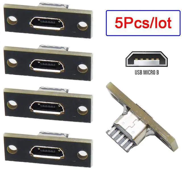 5pcs/set DIY OEM Micro-USB 5Pin Female Type-B Socket Connector Panel Mount Type with PC Board USB 2.0 Pinout