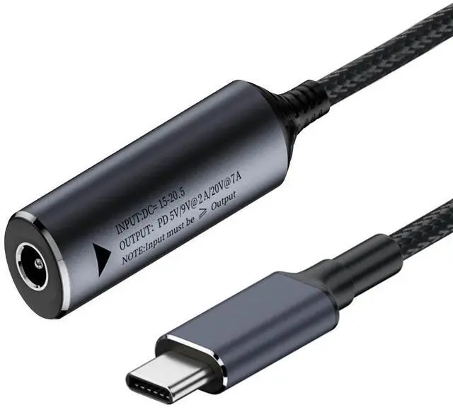 DC Jack 5.5 x 2.1 mm Input to USB-C Type-C Power 140W Charge Cable for Laptop Phone PD9V 5V 20V7A