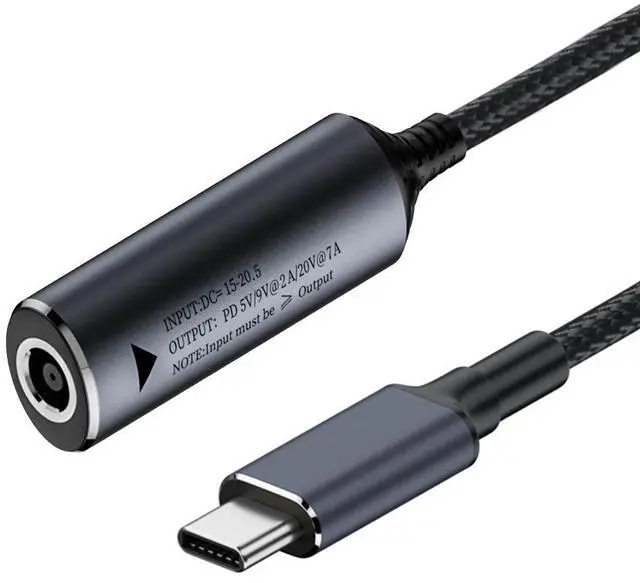 • DC Jack 6.0X1.4mm Input to USB-C Type-C Power 140W Charge Cable for Laptop Phone PD9V 5V 20V7A
