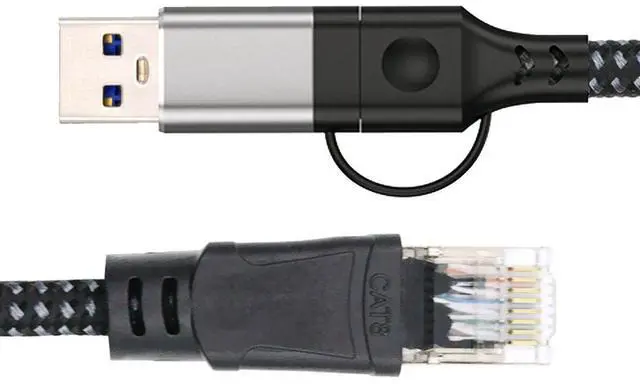 • Combo USB Type-A Type-C USB-C to Ethernet Cable URJ45 Male Cord Directly Connected 1000Mbps Gigabit LAN Network