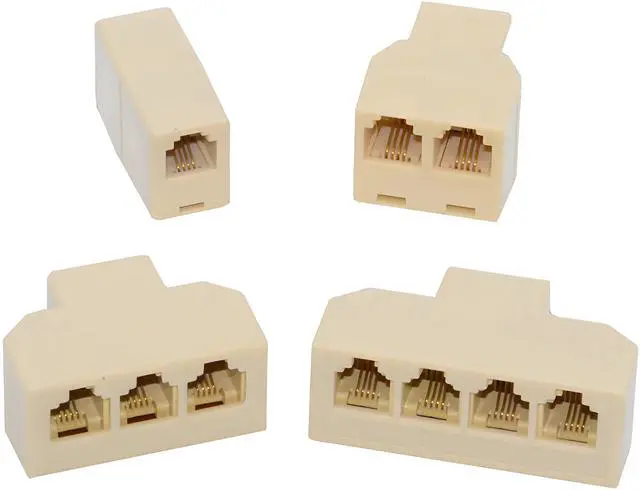 • 4pcs/lot 1-in-2-out 1-to-3 1-to-4 Way Outlet 6P4C RJ11 RJ12 Telephone Phone Modular Jack Line Splitter Adapter Extender