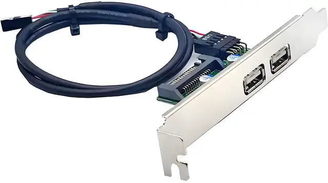 With this cable, you can directly connector motherboard 9pin socket, converted to two usb 2.0 socket. You can use USB 2.0 type-A female convert USB 2.0 (9pin Header) directly connected to the motherboard.