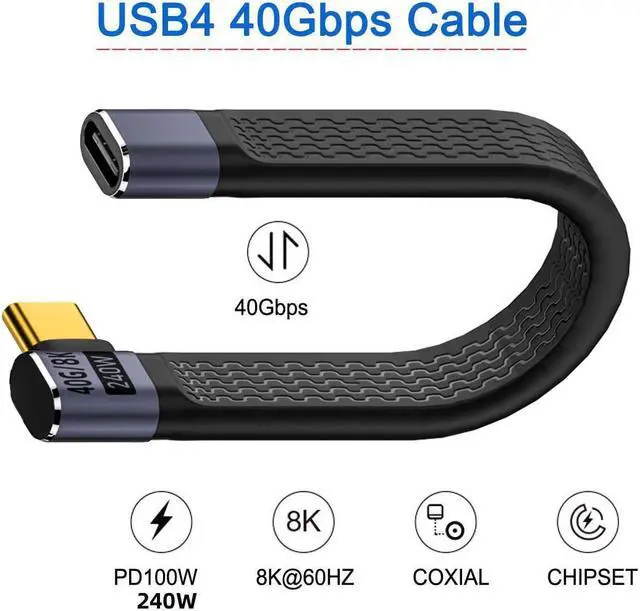 Right AngledUSB4 Extension Cable 13cm Slim Flat Male to Female 40Gbps with 240W Power and 8K@60Hz Video