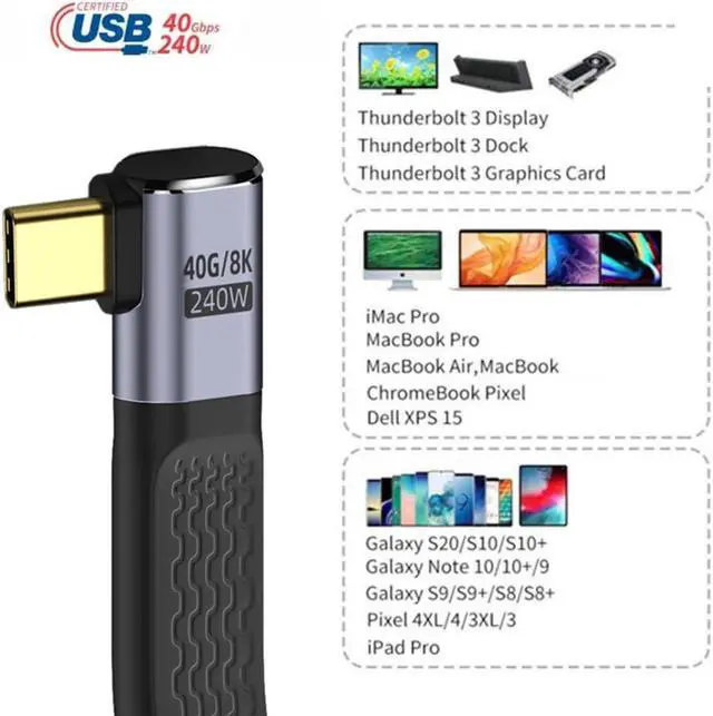 This USB4 Type-C Cable is widely compatible with Most of USB-C Devices (Mainly Laptops). backward compatible with Thunderbolt3, You can also connect with Hard Drivers and Docking Stations for Data.