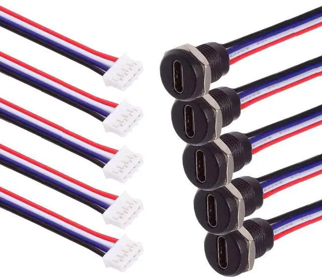 5pcs/set DIY OEM Type C Female Socket to 4Pin Header Cable Pitch= 2.0 mm Panel Mount Type DC 5V Power Data