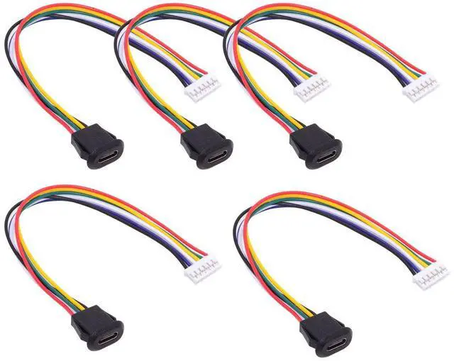 • 5pcs/set DIY OEM Type C Female Socket to 6Pin Header Cable Pitch=2.0mm Latch Mount Type DC 5V/20V PD Power