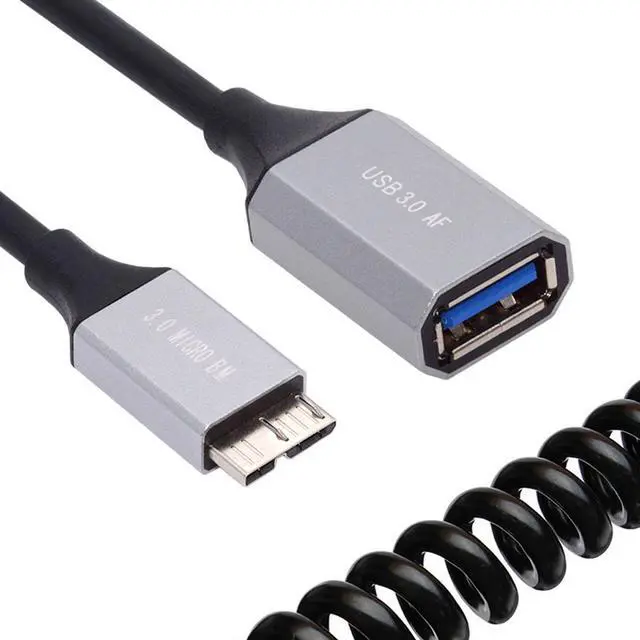 Micro-USB 3.0 Male Host to USB 3.0 -A Female OTG Stretch Coiled Cable 100cm Extension 5Gbps for Disk Phone Camera Data