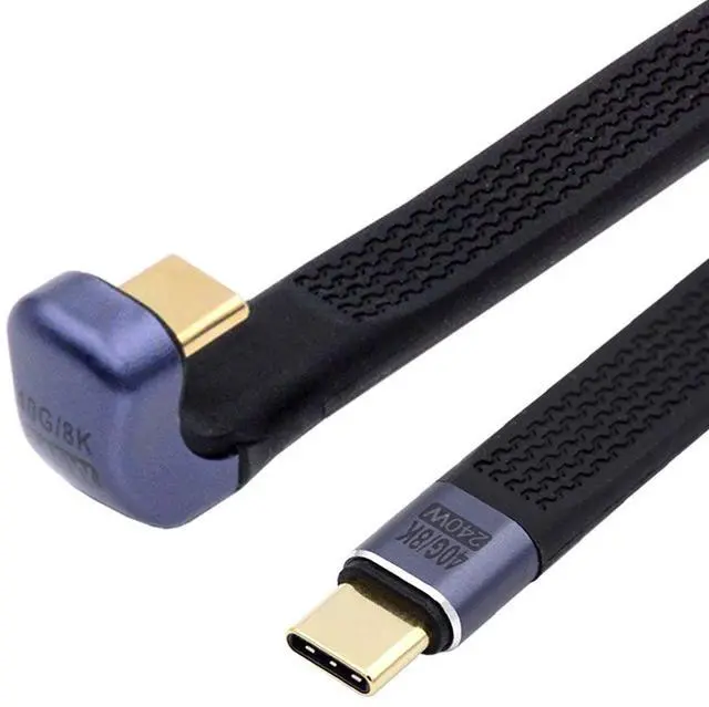 240W Type-C USB-C Male to Male USB4 40Gbps 100W 8K Flat Slim FPC Data Opposite U Shape Back Angled Cable for Laptop Phone 13cm