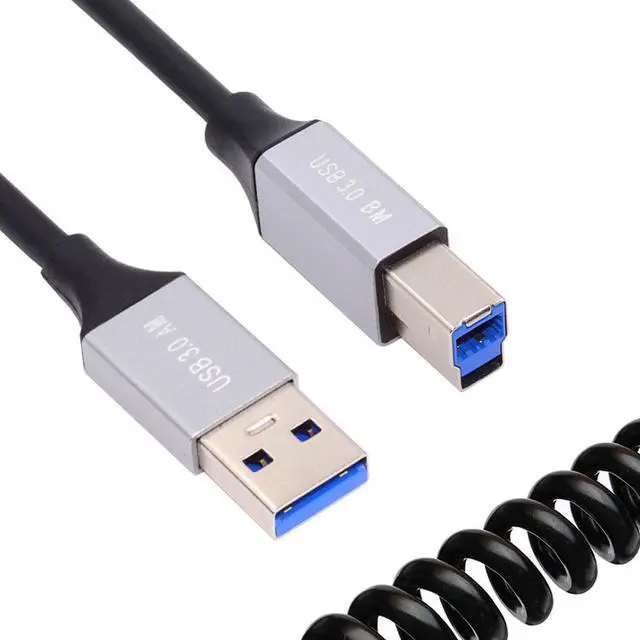 • USB 3.0 Type-A Male to USB3.0 Type-B Male Stretch Coiled Cable 100cm Extension 5Gbps for Disk Printer Camera Data