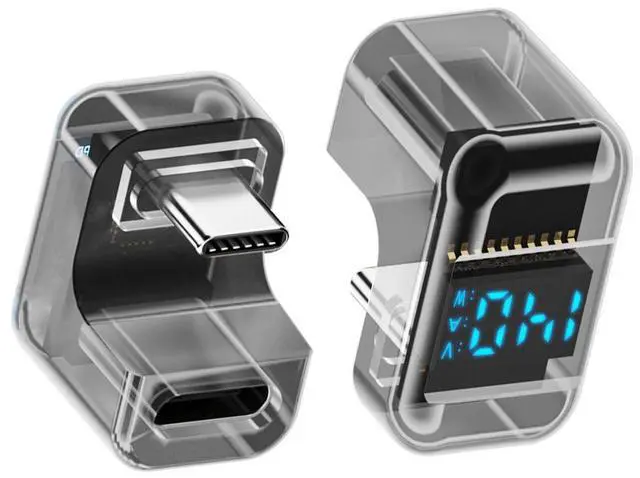 • Type-C Smart LED Display USB-C Male to Female Extension Adapter USB4.0 40Gbps 140W Opposite U Shape Back Angled Current Voltage Monitoring