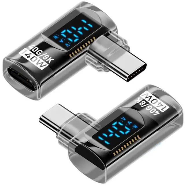 Type-C Smart LED Display USB-C Male to Female Extension Adapter USB 4.0 40Gbps 140W LeftRight Angled 90 DegreeCurrent Voltage Monitoring