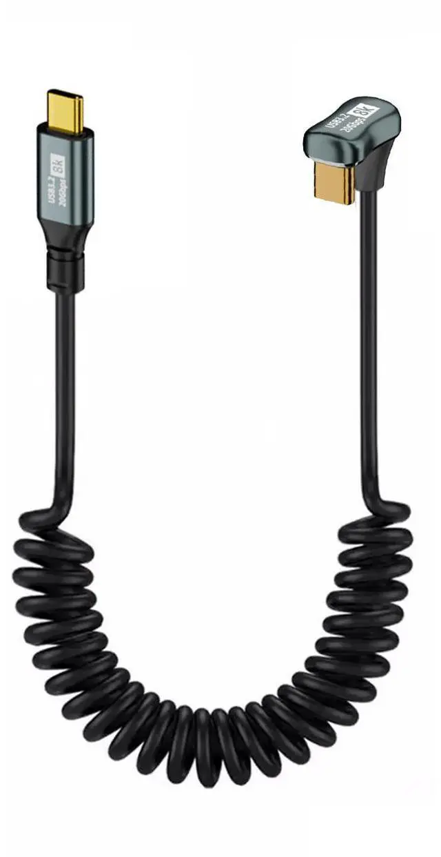 Stretch Coiled USB-C USB4 Cable 20Gbps 100W 8K Type-C Opposite Back Angled Male to Male Cable Power Data for Laptop Keyboard Tablet