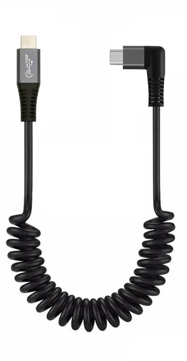 Stretch Coiled USB-C USB4 Cable 20Gbps 100W 8K Type-C Right Angled Male to Male Cable Power Data for Laptop Keyboard Tablet
