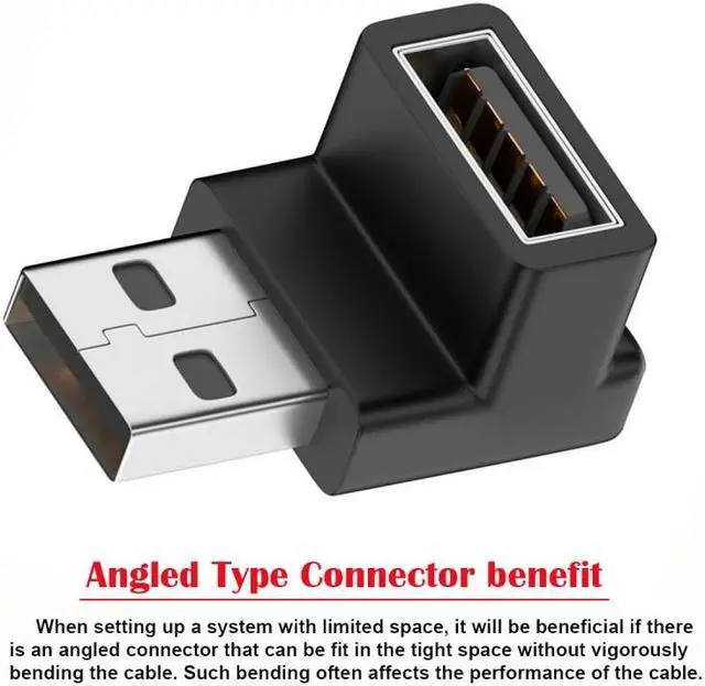 Used to connect USB Type A cables in tight fit applications