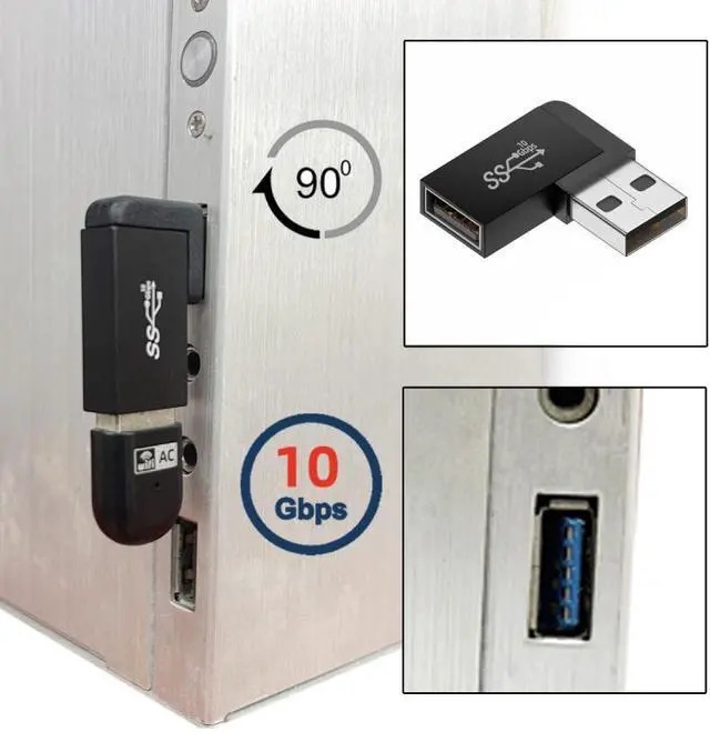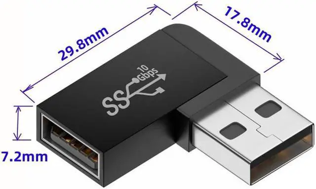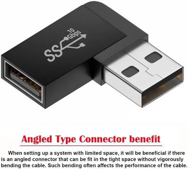 • Angled USB 3.0 Adapter, Type A Male/Female,Support 10Gbps data transfer rating.