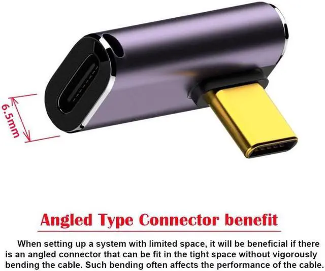 The Low Profile angled type Allowing you to connect it to a female port, even if space around the port is limited.