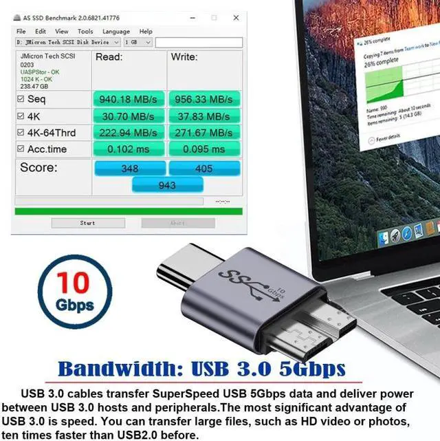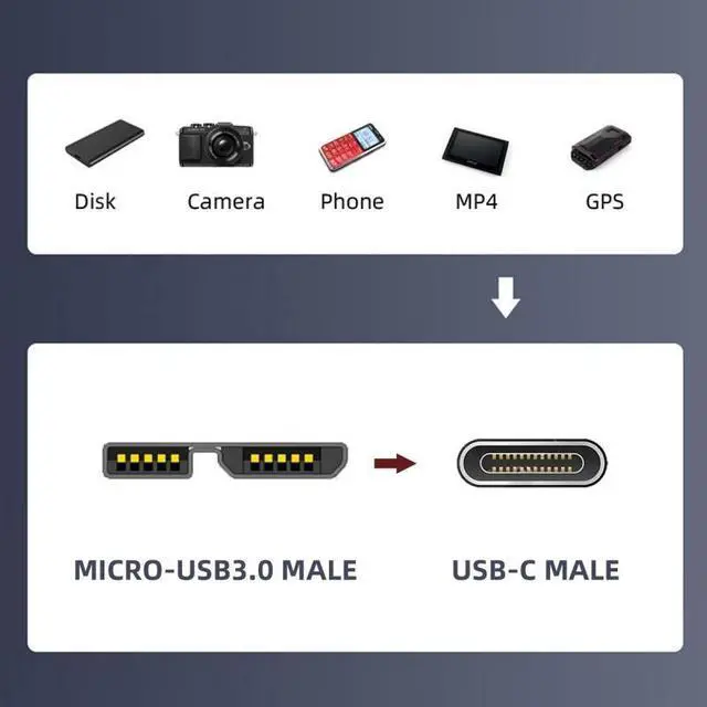 USB-C USB 3.1 Type C male to Micro USB 3.0 Male Data Adapter 10Gbps Data Power