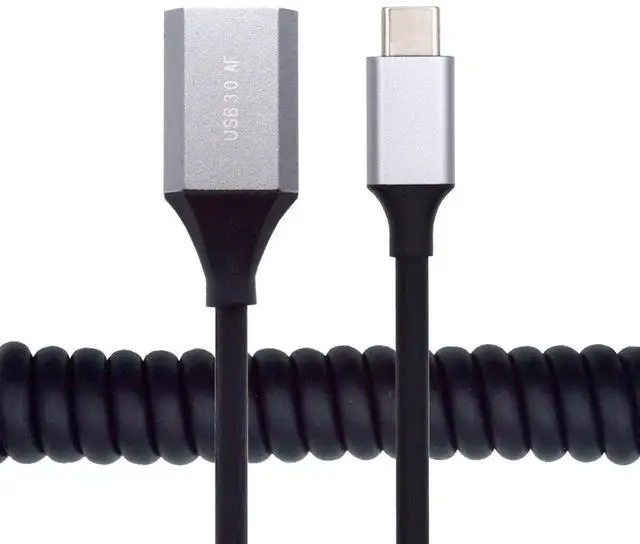 USB-C Type-C Host to USB 3.0 -A Female OTG Stretch Coiled Cable 100cm Extension 5Gbps for Disk Phone Camera Data