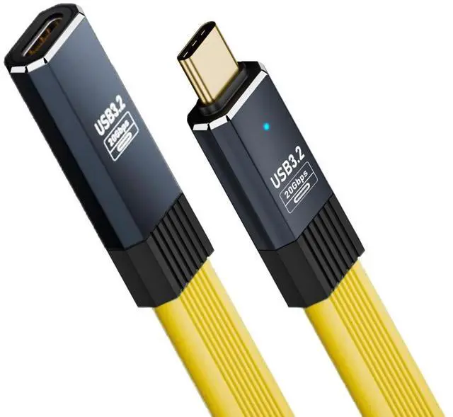 USB4 Male to Female Extension Cable 20Gbps Flat Slim FPC Cable with 100W 8K 5K USB 4.0 Type-C Compatible with Thunderbolt3/4 with yellow jacket