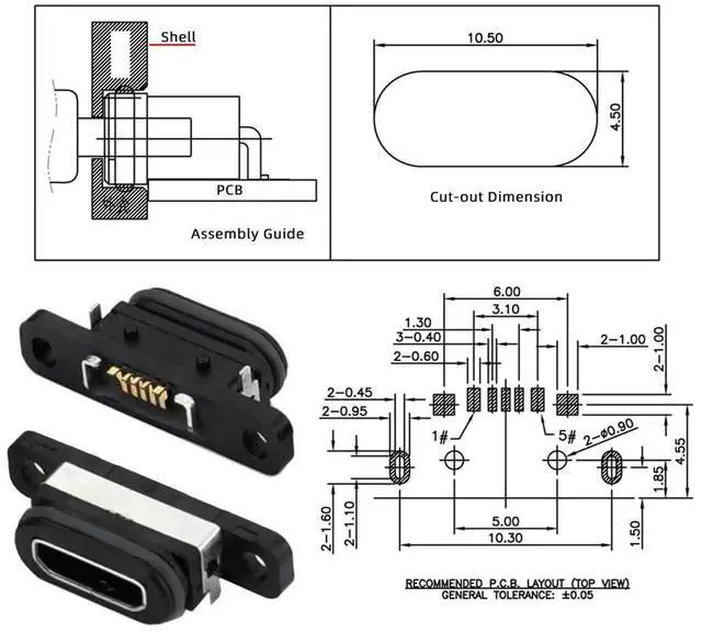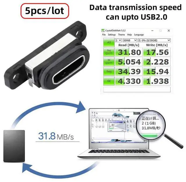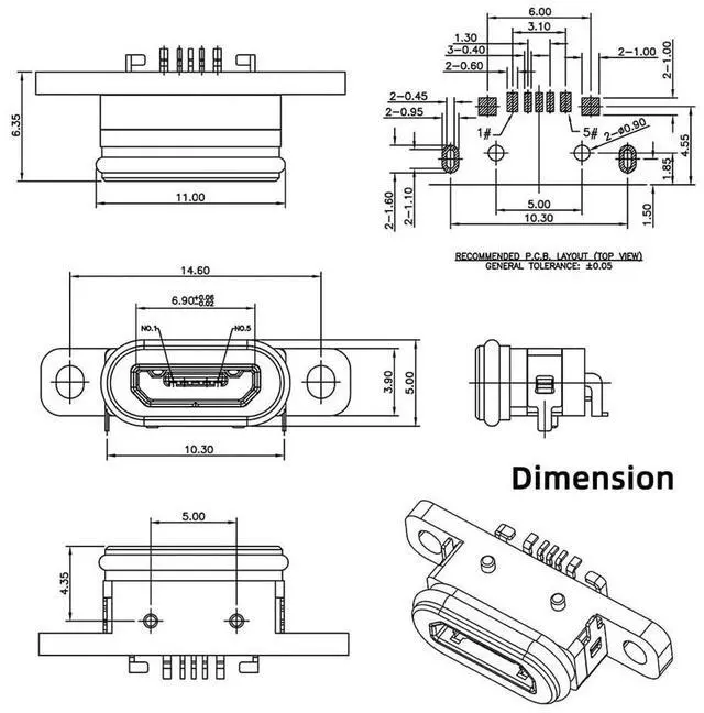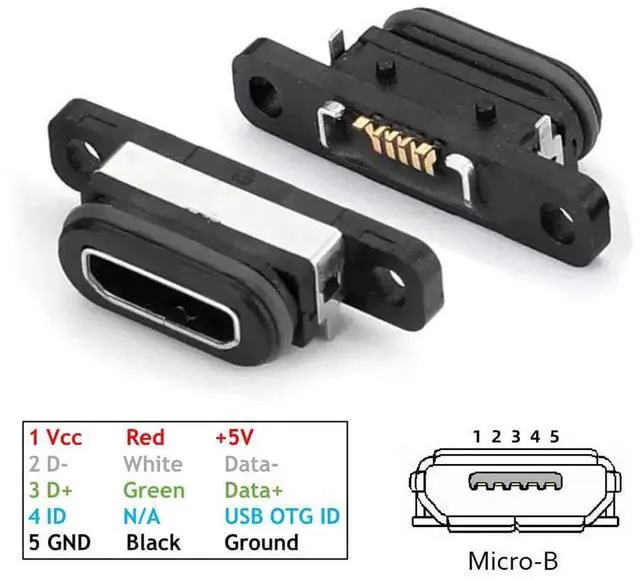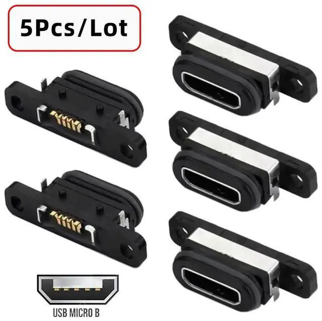 5pcs/set DIY OEM USB 2.0 Micro-B Female Receptacle Socket Connector with Mounting Waterproof SMT Type 480Mbps