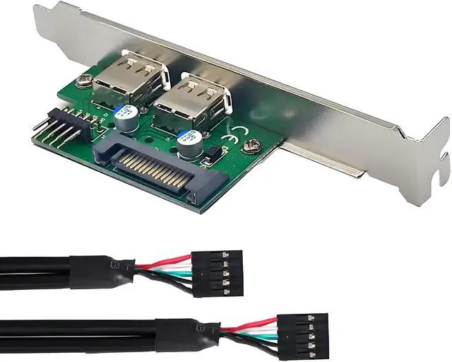 Xiwai Internal Dual USB2.0 Female Mount Panel to Motherboard 9pin Baffle Cable with Extral SATA Power and 12cm Bracket