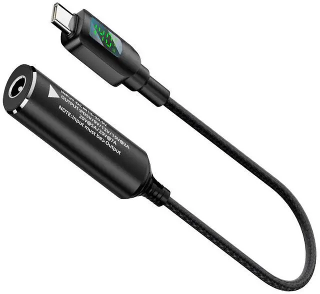 • DC Jack 5.5x2.5mm Input to USB-C Type-C Power 140W Smart LED Display Charge Cable for Laptop Phone PD9V 5V 20V7A