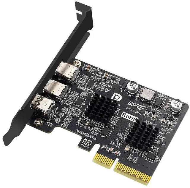 PCI-E Express 4x Mini Displayport 1.4 Input to Dual 10Gbps USB 3.1 Type-C USB-C 4K 60hz Output Desktop Graphics Expansion Card Adapter ASM3142