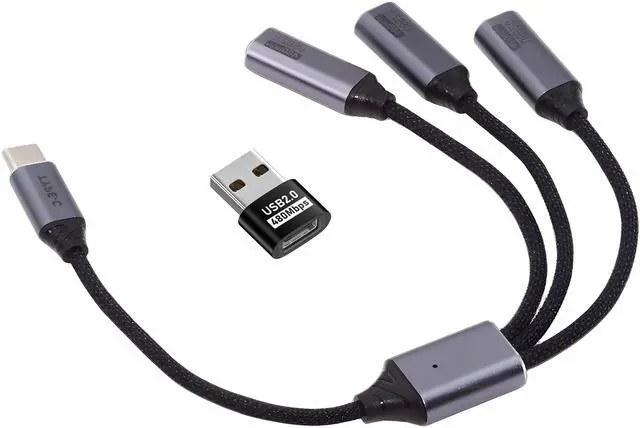 • USB 2.0 Type-C USB-C to 3 Ports Hub Cable Bus Power 1 to 3 Data for Laptop Desktop Phone Mouse Keyboard Printer Disk